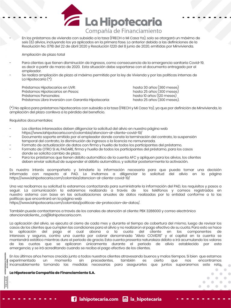 Escribanos a: comercial@lahipotecaria.com