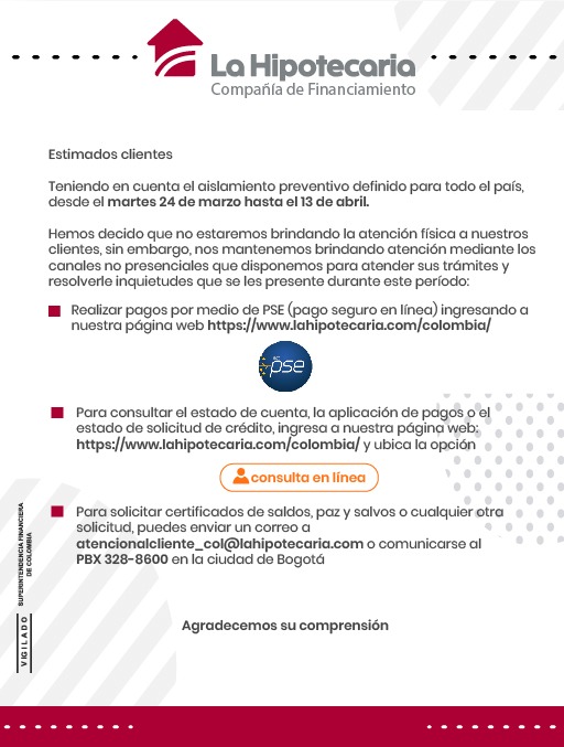 Escribanos a: comercial@lahipotecaria.com